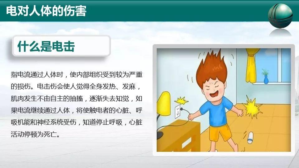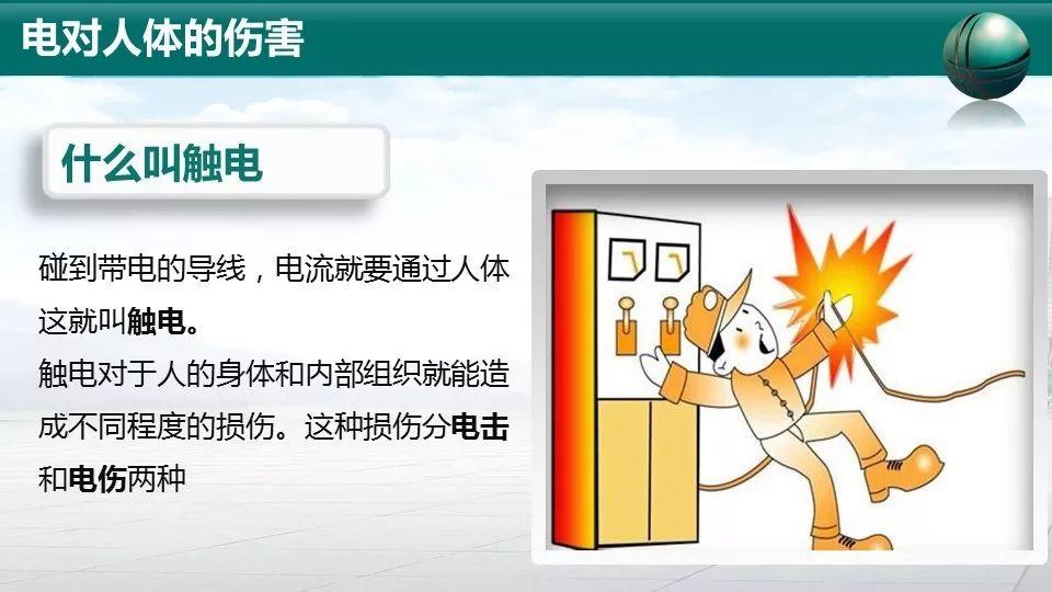 “电击”:电流流过人体内部破坏心脏、呼吸与神经系统,重则危及生命。